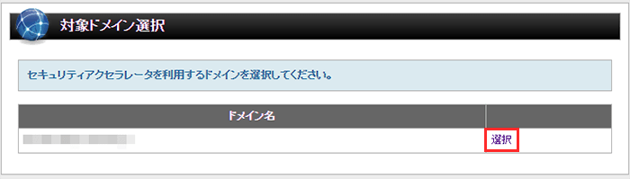 対象ドメインの「選択」ボタンをクリックします。