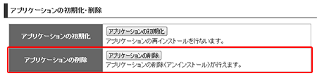 ページ中ごろにある各種設定メニュー内から、「アプリケーションの削除」をクリックします。