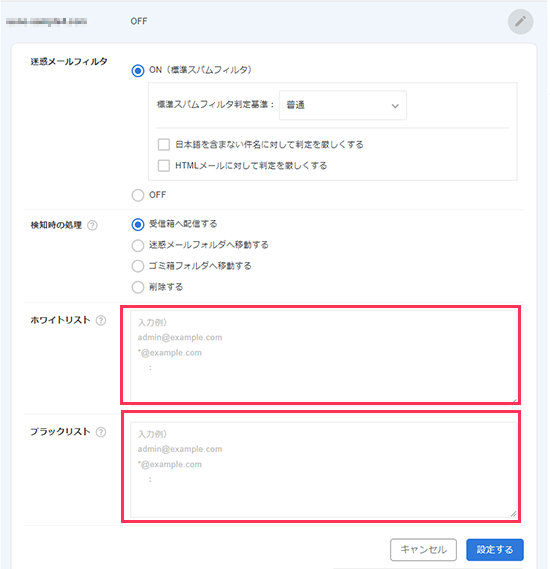 迷惑メール判定を回避するホワイトリストや、逆に、常に迷惑メール扱いするブラックリストを設定することも可能です。