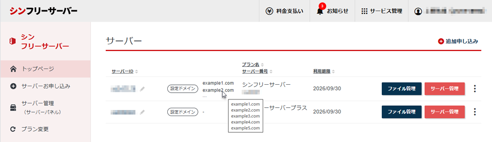 サーバーアカウントに設定されているドメインの一覧を、より簡単にご確認いただけるよう、